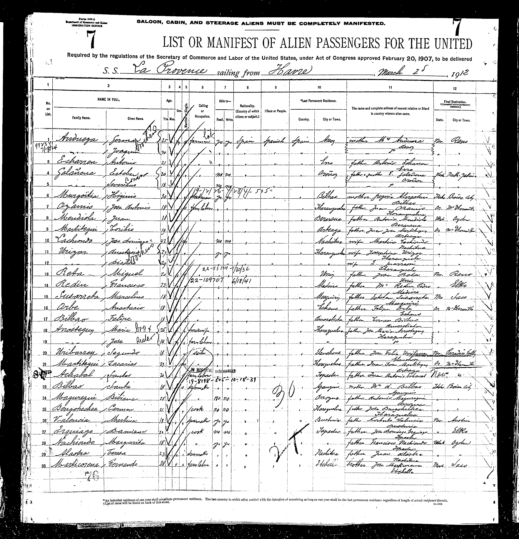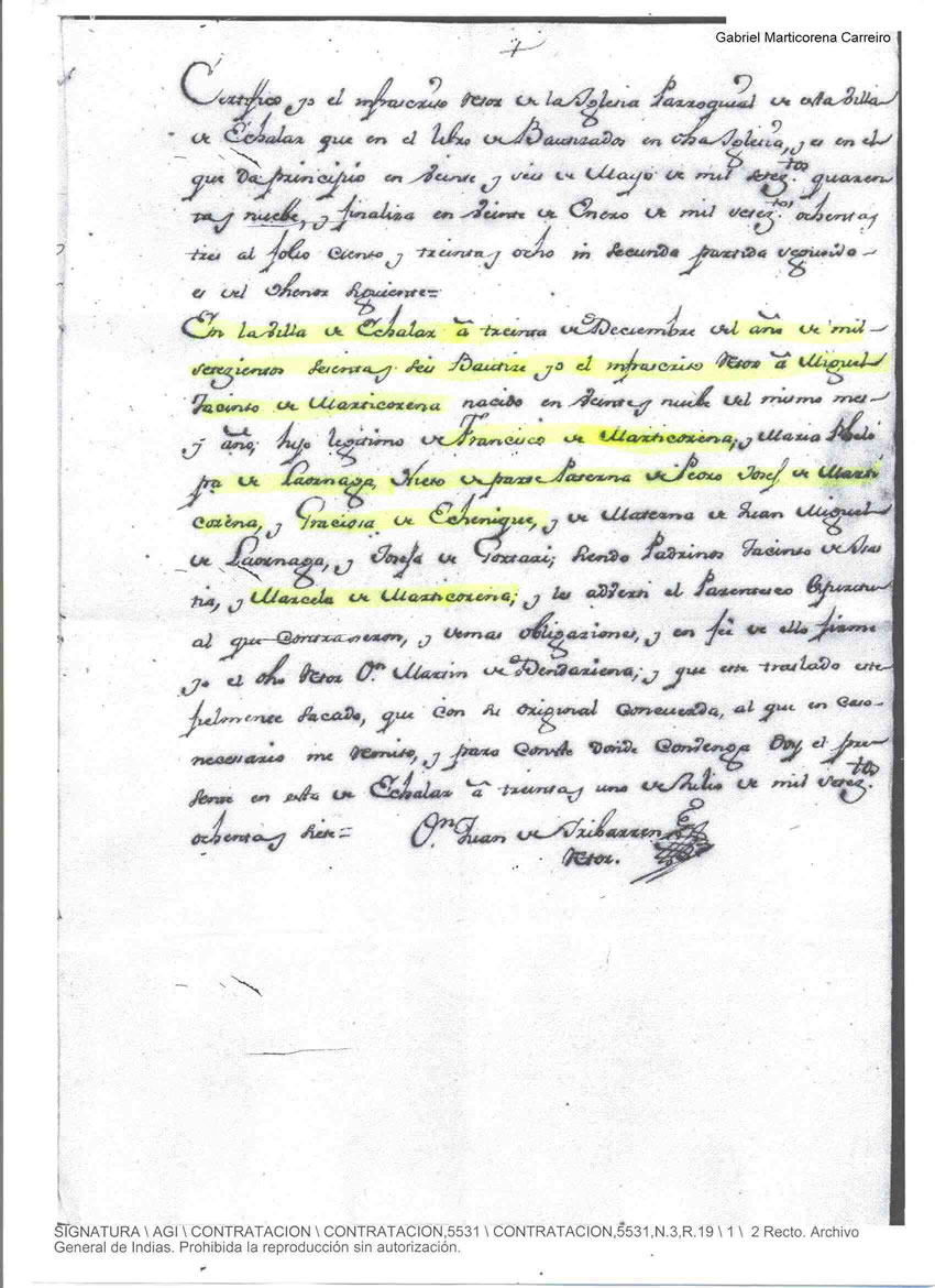 INTERNACIONAL E INMIGRANTES Esta sección contiene documentos genealogicos concernientes a los MARTICORENA en otros países. En un futuro abarcará genealogias de otras familias que tengan relacion con los MARTICORENA. - Los MARTICORENA en España - Partida de bautizo de Miguel Jacinto de España reconocido como noble - Pedro de Marticorena de España - Los MARTICORENA en el Mundo - Listados de inmigrantes MARTICORENA en USA -1- -2- -3- -4- -5- -6- -7- -8- -9- -10- -11- - Libros publicados por Marticorenas en España |